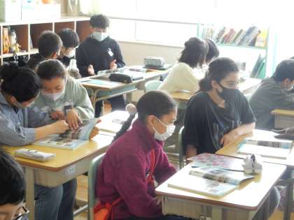 教科書の建物の写真やアルファベットのロゴを見て、どうしてきれいに見えるのかを考えました。