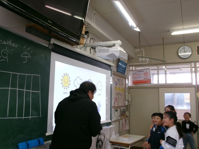 「天気」について勉強しました。晴れ、くもり、雨などの言葉を英語で覚えました。