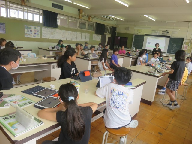外国語科は、自己紹介の原稿を考えました。名前だけでなく、好きな色・スポーツ・教科を入れるので、教科書を見てつづりを確かめながら書きました。