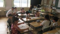 図工は、表したいものを、どう折って立たせるかを考えながら作りました。建物や動物、乗り物など、いろいろな物が立ちました。