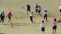 体育は、サッカーボールを使った運動をしました。ボールを止めたり蹴ったりしながら、...