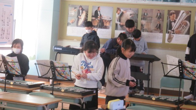 音楽の時間は、「魔法のすず」の器楽合奏の練習をしました。まずは、楽譜通り担当楽器...