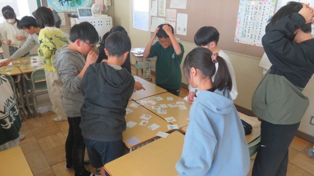 1年間で学習した単語のカードとりをしました。6年生は、出題のレベルが高く、「hi...
