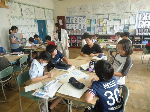 グループで生産者や消費者など様々な立場から考え、資料を根拠とした考えを発表しました。子どもたちも真剣そのものです。