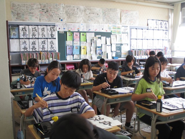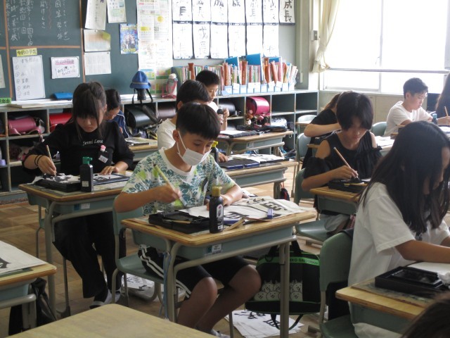 5年生は、「自然」という題字に挑戦しました。黙々と筆を進める姿に高学年らしさを感じました。