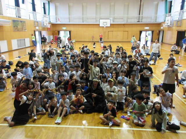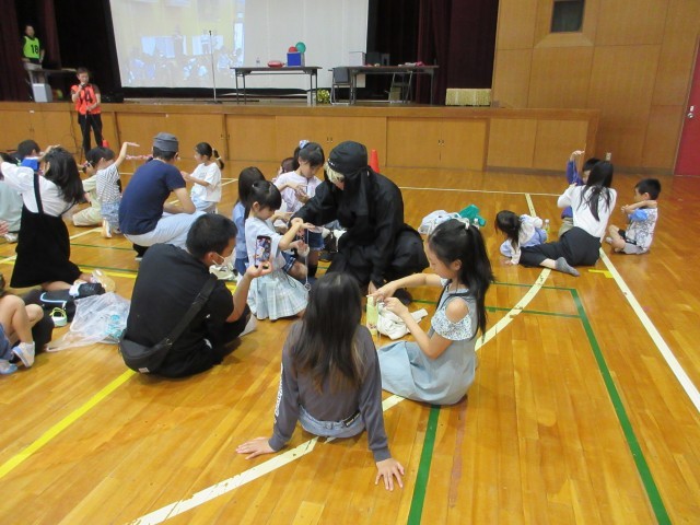 子どもたちが楽しみにしている村中フェスタ2025が18日行われました。忍者マジシャンのハンゾーさんによるマジックショーです。マジックを見るだけでなく、参加体験型のマジックショーで、リングとチェーンを使ったマジックを体験しました。友達と家族とマジックを楽しみました。参加されたみなさん、ありがとうございました。