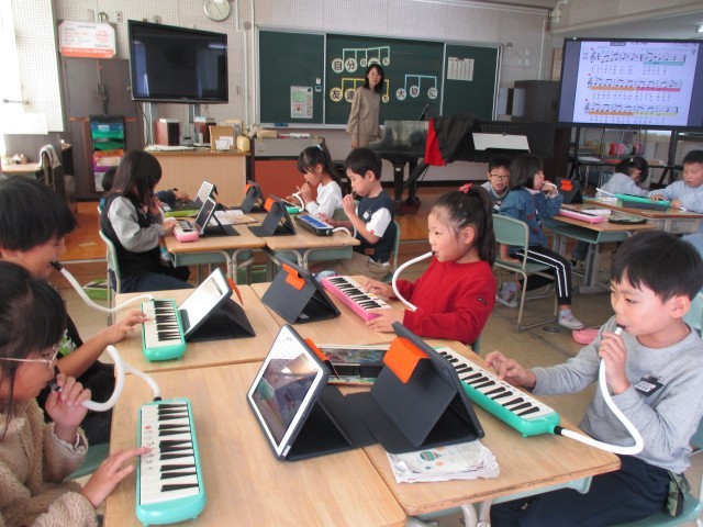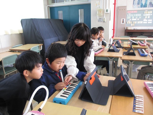 2年生は鍵盤ハーモニカで「こぎつね」という曲を演奏しています。