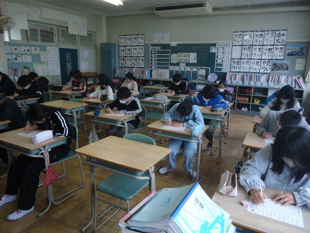6年生では漢字テスト、4年生は「夢の世界へ」の歌を、2年生では展示作品の準備をしていました。