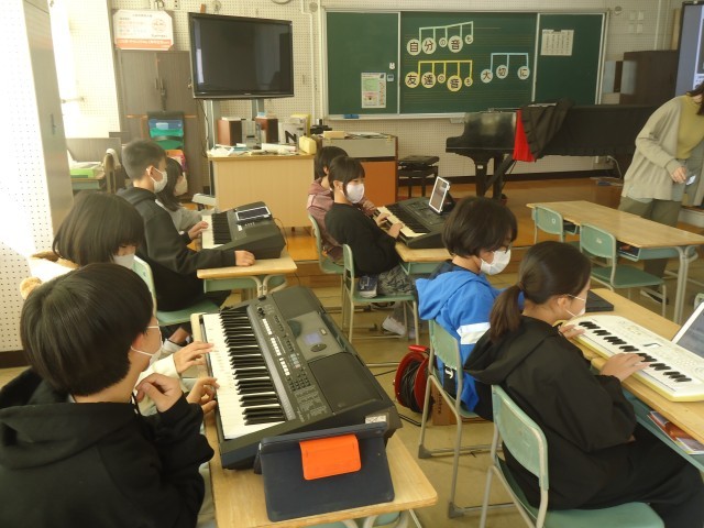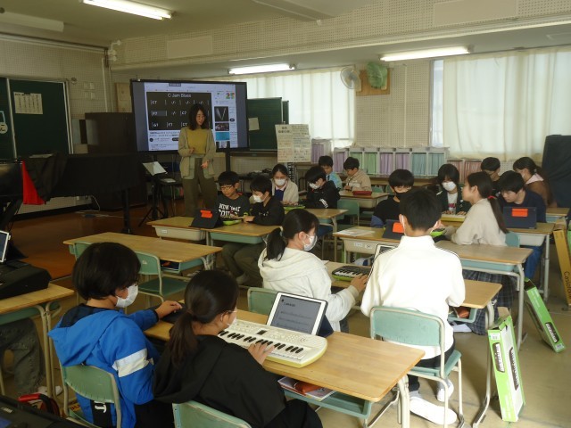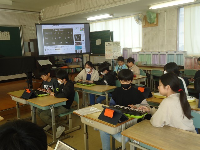 6年生の音楽では、「Cジャムブルース」という曲を演奏しています。