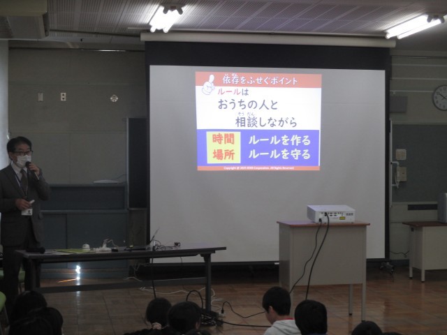ゲーム依存やSNSを使う際に伴う危険について動画を見ながら考えました。
