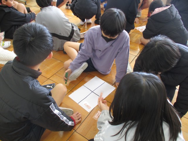 身体測定の前に、養護教諭からエナジードリンクのお話を聞いたり、グループに分かれてワークを行ったりしました。
