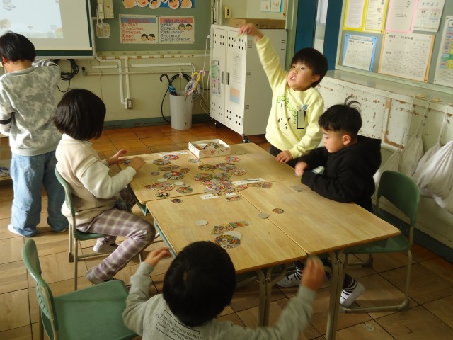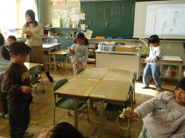 けん玉やすごろく、めんこなど、いろいろな遊びを体験していました。