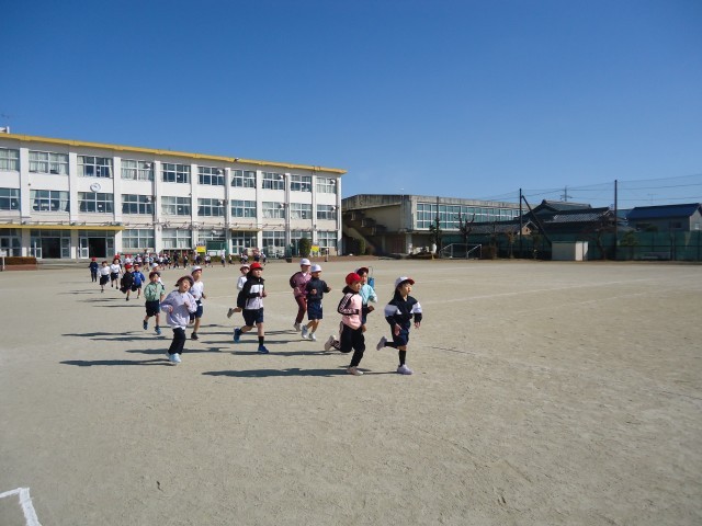 準備運動はもちろん、運動場を走ったり、なわを跳びながら走ったりしています。