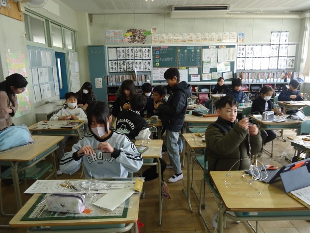 5年生の図工では、針金を使った工作をしています。