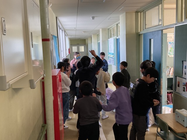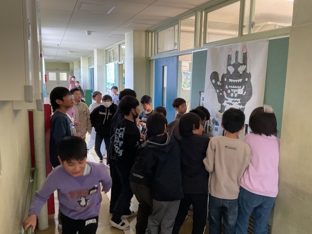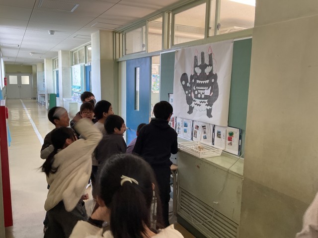 4年生廊下に、鬼が現れました。