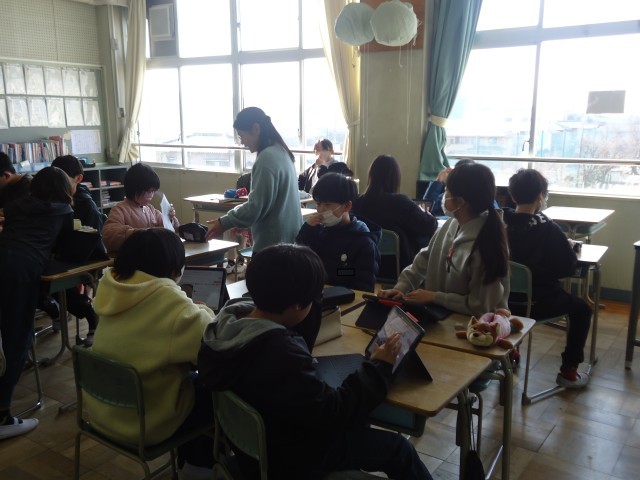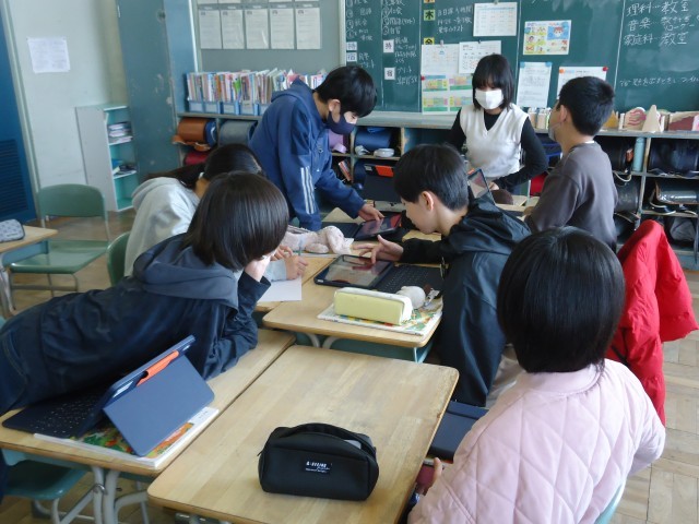 6年生の家庭科では、調理実習で作る物について、グループごとに話し合っていました。