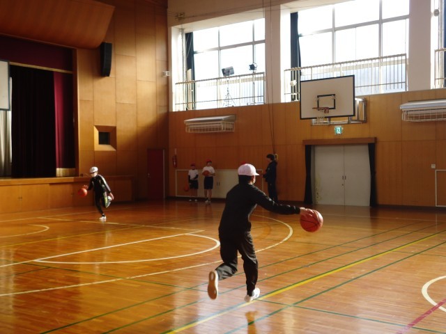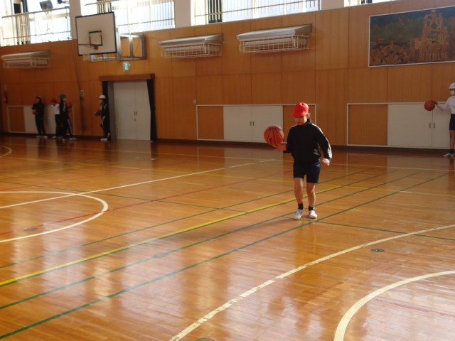6年生の体育ではバスケットボールをしています。