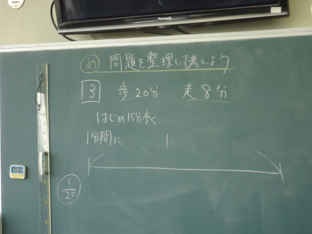 問題:「たくやさんは、家から駅まで行くのに、歩けば20分、走れば8分かかります。