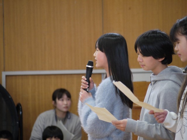 村中小学校での6年間の生活を振り返り、後輩たちに想いを伝えました。
