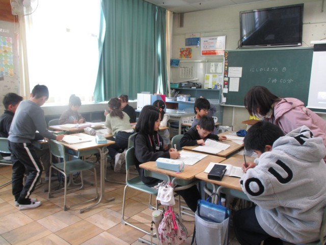 今日は、1年の最後の通学団会が行われました。今年度の反省と、次年度の新しい班編成の確認をしました。新しい1年生を迎える準備が進んでいます。
