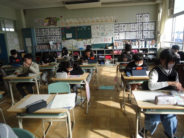 5年生の図工では、版画をつくっています。