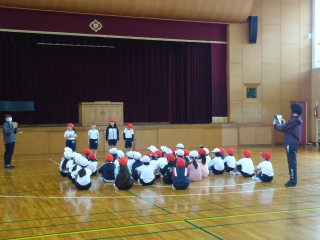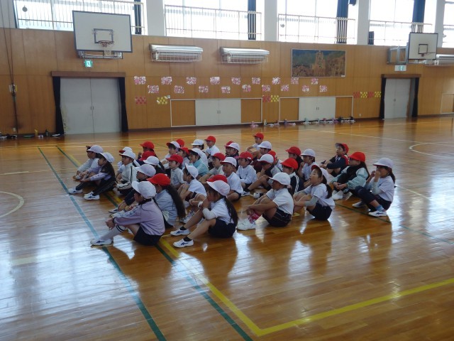 体育館から元気な声が聞こえてきました。1年生のかけ声です。