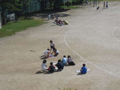 今日は一日中、日光が指し、理科の観察日和となりました。時間ごとに太陽の動きと、できた影の長さ、向きを観察していきました。太陽さん、観察ができました。ありがとう。