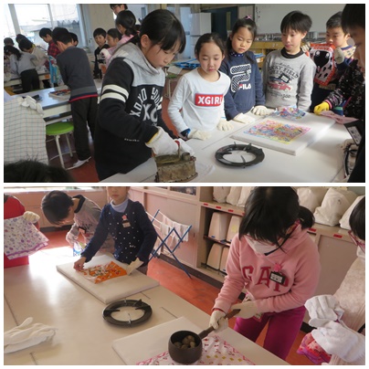 社会科の授業で、昔の洗濯とアイロンの体験を行いました。実際にたらいと洗濯板を使って洗濯することで、昔の人の苦労を知ることができました。午後には、ひのしと炭火アイロンを使ってアイロンがけをしました。初めての体験で、子どもたちはとてもわくわくしながら活動していました。