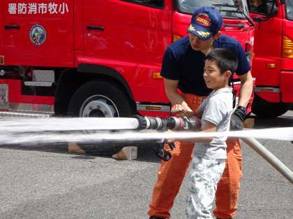 写真は、放水体験の様子です。