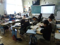 今では、はがきを書く習慣がずいぶん減ってしまいましたが、書写を通して日本の伝統文化を学んでいくこともします。ここでは、はがきの書き方、文字の大きさなどに気をつけて丁寧に書いていきます。はがきのワークシートが終わると、お手本を見ながら、何度も筆ペンで自分の名前を書く練習もしました。ずいぶん形よく書けるようになってきました。じっくりと自分の名前に向き合うことができました。