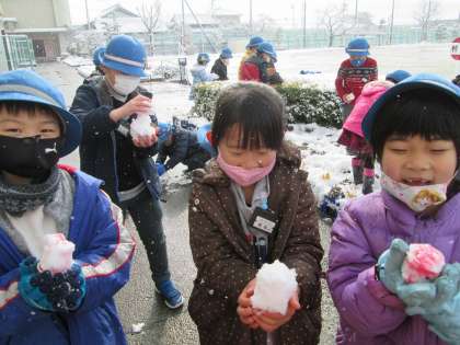 雪や氷柱を使って、友達と一緒に雪だるまを作ったり、小さなかまくらを作ったりして遊びました。