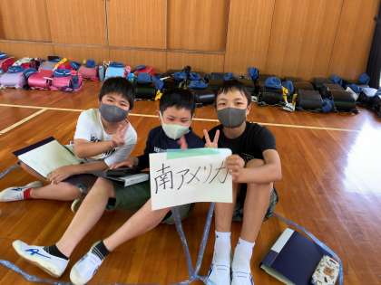 「世界がもし57人の村だったら」、世界のどの地域に人が多くいるのか、栄養不足の人や文字を読むことができない人の割合はどのくらいなのか、など様々なことを、役割カードを使って大陸別に集まったり、栄養不足の人が立ったりしながら学んでいくことができました。最後には「世界がもし100人の村だったら」のお話を読み、普段の生活のありがたさ考えることができました。