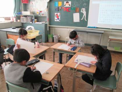 紙版画で動きのある自分を表すために試行錯誤していました。