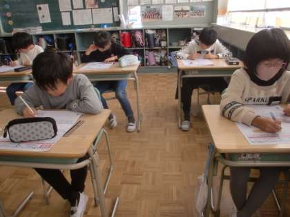 まとめのテストに頑張って取り組んでいました。
