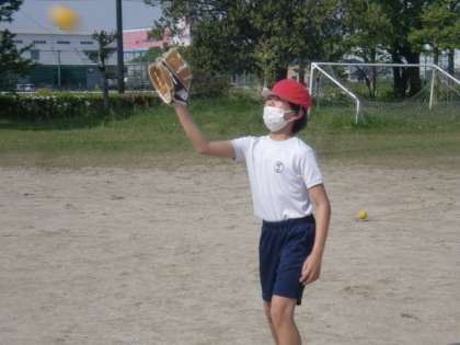 ボールをねらった方に投げる練習やグローブでうまくとる練習をしました。