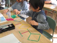 算数で数え棒を工夫して並べて思い思いに好きな形を作りました。子どもたちの創造力に...