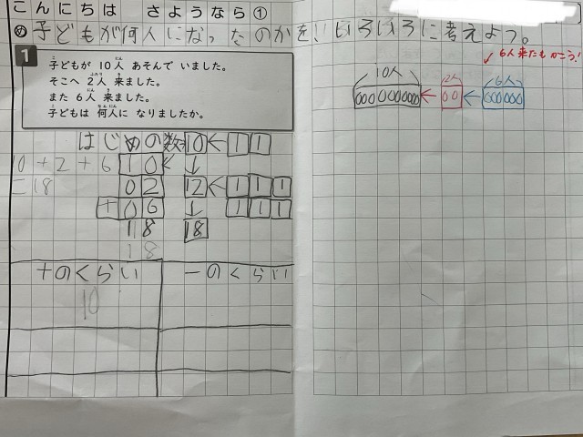 算数では、「順に増える場面の問題」を学習しました。子どもたちは、一つひとつ順に考えたり、全体をまとめて考えたりしながら答えを求める練習をしました。考え方の工夫を知ることで、「あっ、わかった!」と気づく場面も見られました。これからも友達と考えを交流しながら、学びを深めていきます。