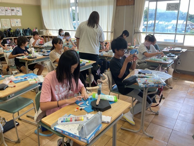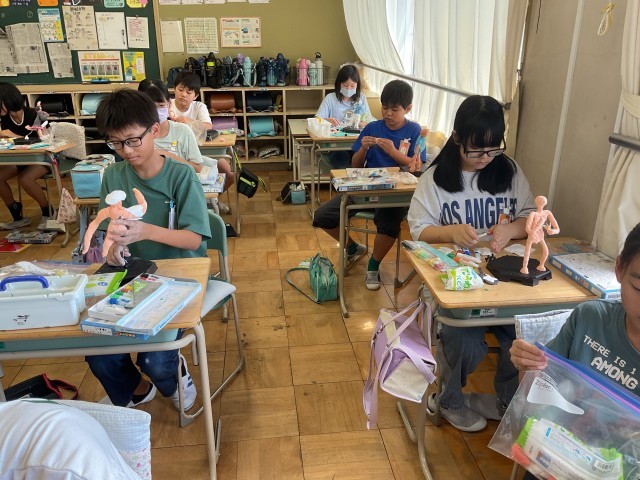 図工競技会では、「未来のわたし」をテーマに粘土を使って作品をつくりました。細かな装飾まで工夫が施されており、一人ひとりの将来への思いや想像力があふれる作品となりました。みんな集中して取り組むことができました。