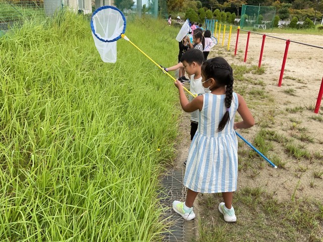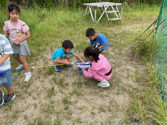 今日は金曜日で、エサもないため、つかまえたむしも、元いたところに返しました。