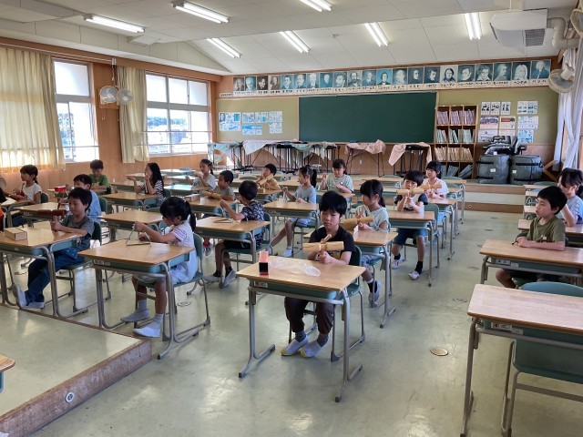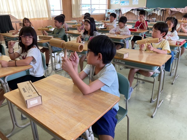 曲のリズムに合わせて、トロンボーンやトライアングルを演奏しました。音を鳴らす楽しさを味わいながら演奏することができました。