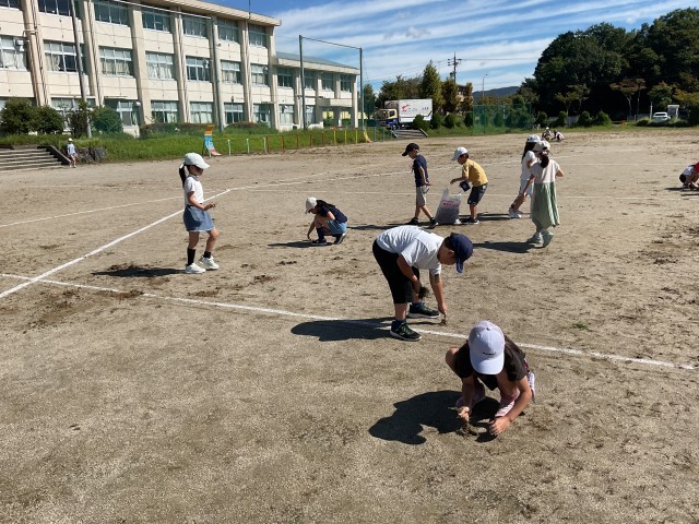 休み時間に、運動場に生えた草を一生けんめい抜く子どもたちの姿があちらこちらで見られました。そんな子どもたちの姿を見ていると、「大城小の未来は明るいな」と感じました。小さな活動の積み重ねが、学校をもっとすてきな場所にしていくのだと思います。