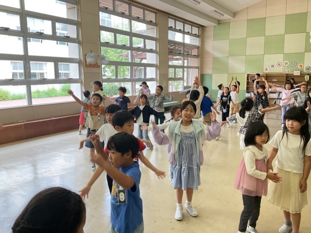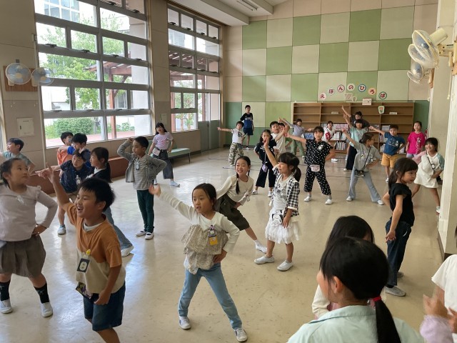 今週から、休み時間に2年生と一緒にダンスの練習をしています。有志ですが、ダンスが大好きな子どもたちは率先して踊っています。