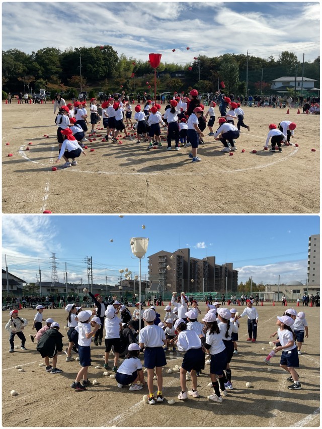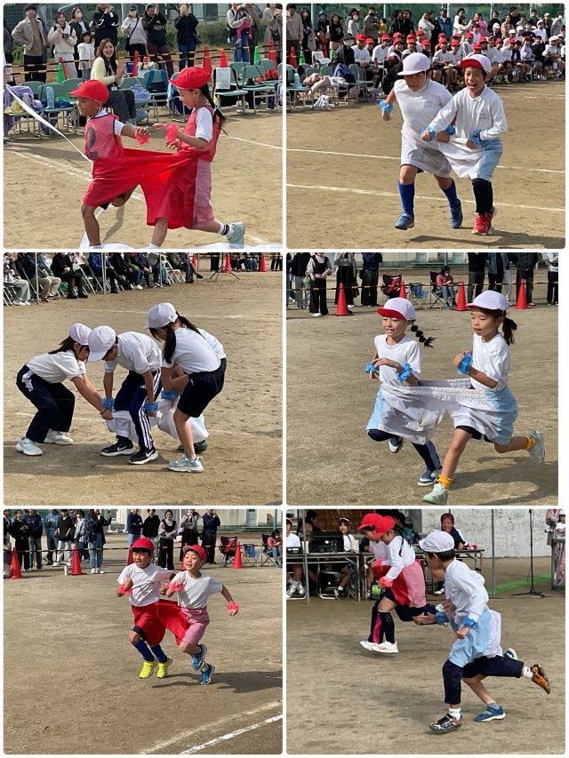 徒競走では力いっぱい走り、ダンスでは笑顔で体を動かし、デカパンリレーや玉入れでは声をかけ合いながら協力する姿が見られました。