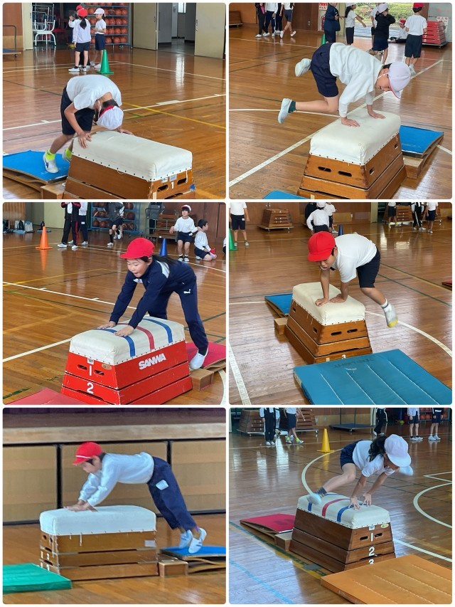 跳び箱の学習がスタートしました。まずは色々な跳び方にチャレンジしました。