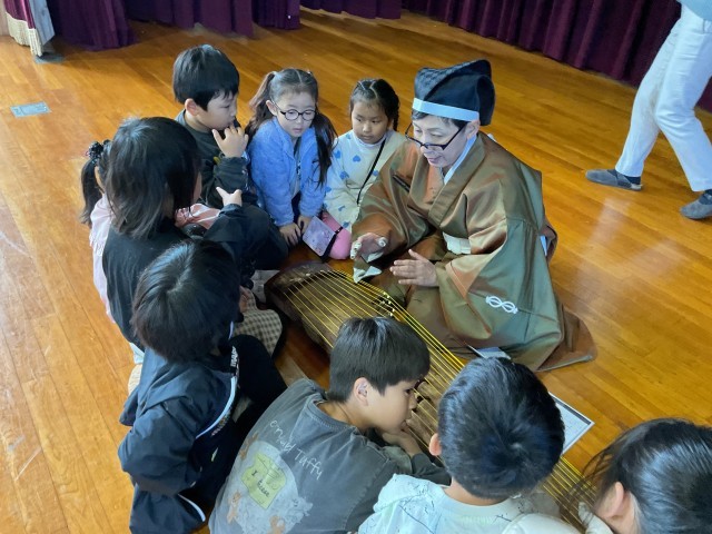 「眠くなった子が、感性の豊かな子!」と楽団の方が言ってみえました。一年生にとって雅楽の音色は、初めは少し怖かったようですが、だんだんとその音色に引き込まれていきました。