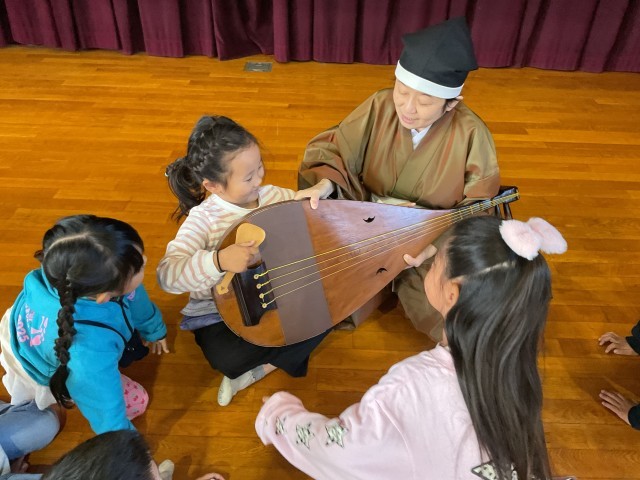 楽琵琶(がくびわ)や篳篥(ひちりき)などの楽器に触れさせていただくことができました。