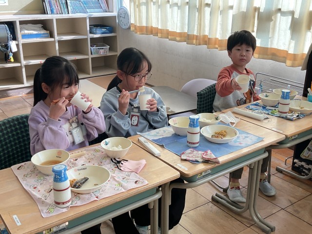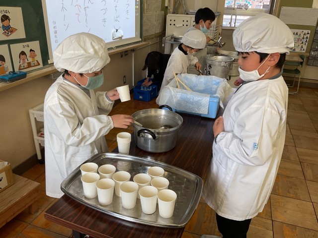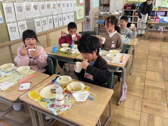 2年生で育てた大根をおでんにして、みんなでいただきました。自分たちで育てた大根の味に、子どもたちは嬉しそうにほほえんでいました。