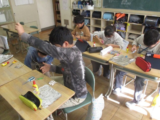 12月18日(木) 社会科では伝統工芸品(七宝焼)の学習で、身近にある材料を使った七宝焼き作り体験をしました。