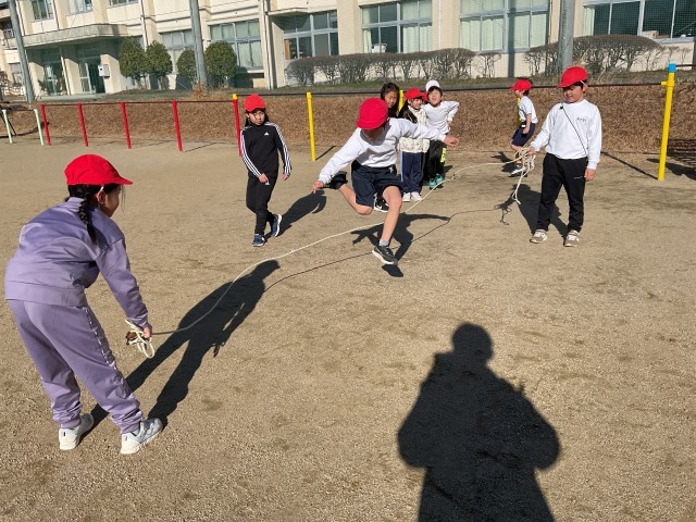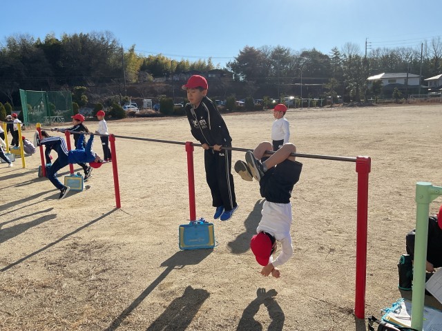 2年2組の体育では、鉄棒と大なわとびの学習をしました。みんなで声を掛け合いながら楽しく身体を動かすことができました。
