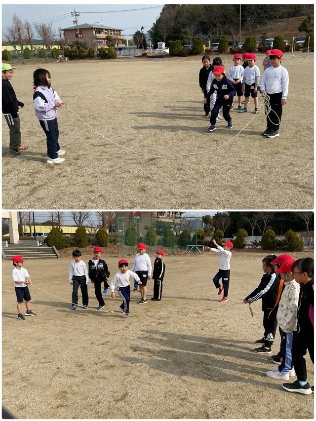 2年2組の体育では、なわとびや鉄棒で個人の力を高めたり、大なわとびでみんなで力を合わせて取り組む楽しさを感じたりしています。今後も、いろいろなカタチで身体を動かす楽しさを感じられるように、今後も実践を積み重ねていきたいです。